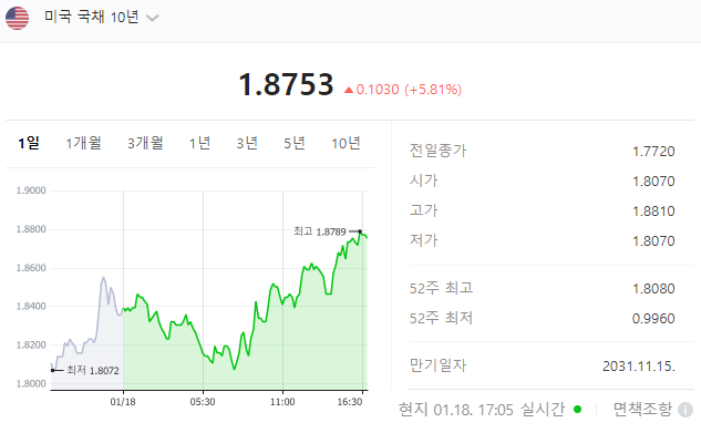 - 美 10년물 국채금리 1.85%대 위로…2년물 1% 돌파