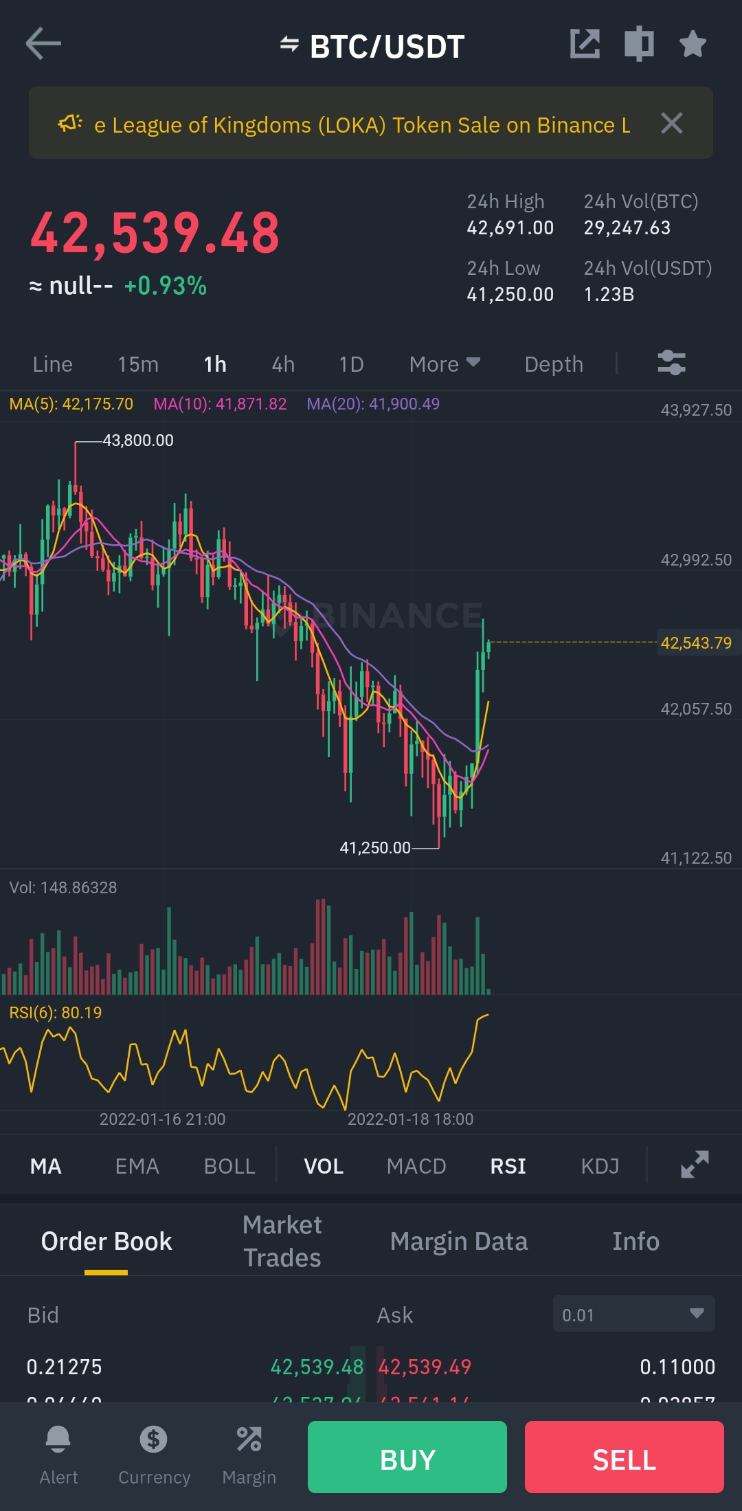 어제자의 40600-41300 라인에서 1차 매수포인트가 있었고, 현재는 약 1000-1500불 올라오며
