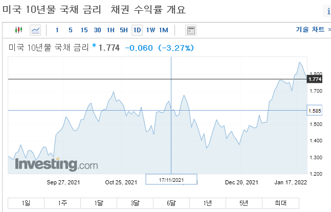 미국 연방준비제도를 비롯한 글로벌 중앙은행들의 긴축우려가 높아지면서라고 해석할수 있고,